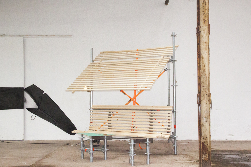 Makes a fold up- and down sunshade for your scaffolding!