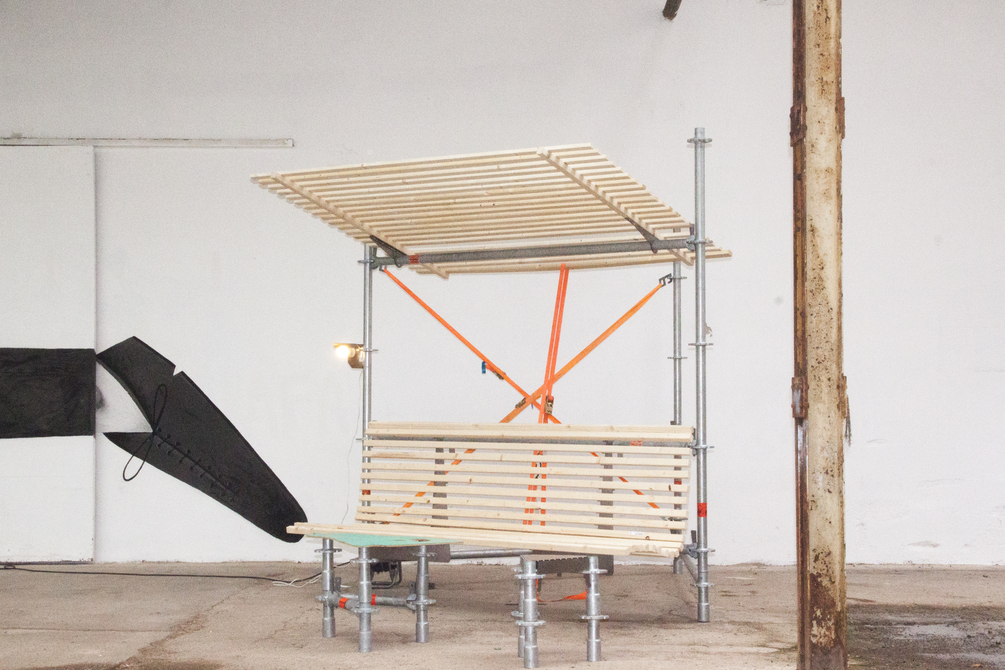 Makes a fold up- and down sunshade for your scaffolding!